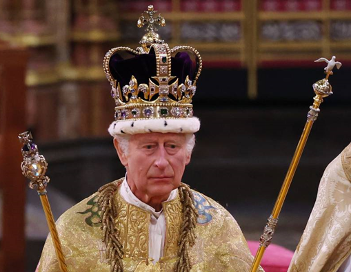 At 12:02 pm exactly (1102 GMT), the Archbishop of Canterbury Justin Welby placed the solid gold St Edward’s Crown on Charles’s head as a sacred and ancient symbol of the monarch’s authority.